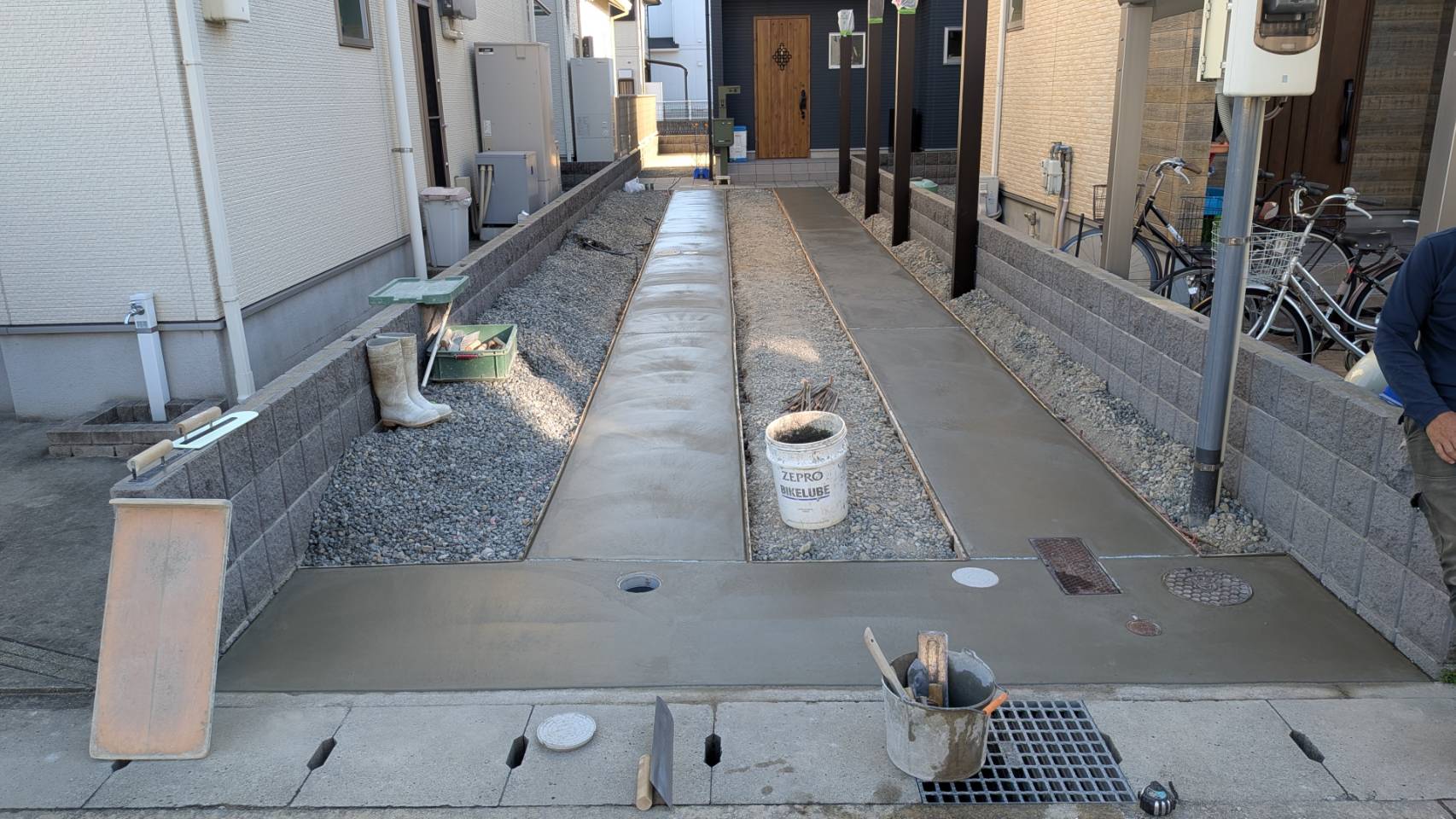 「2025秋のビーズガーデン感謝セール」にお申し込みいただいて、カーポート縦連棟と轍のコンクリートを施工します。