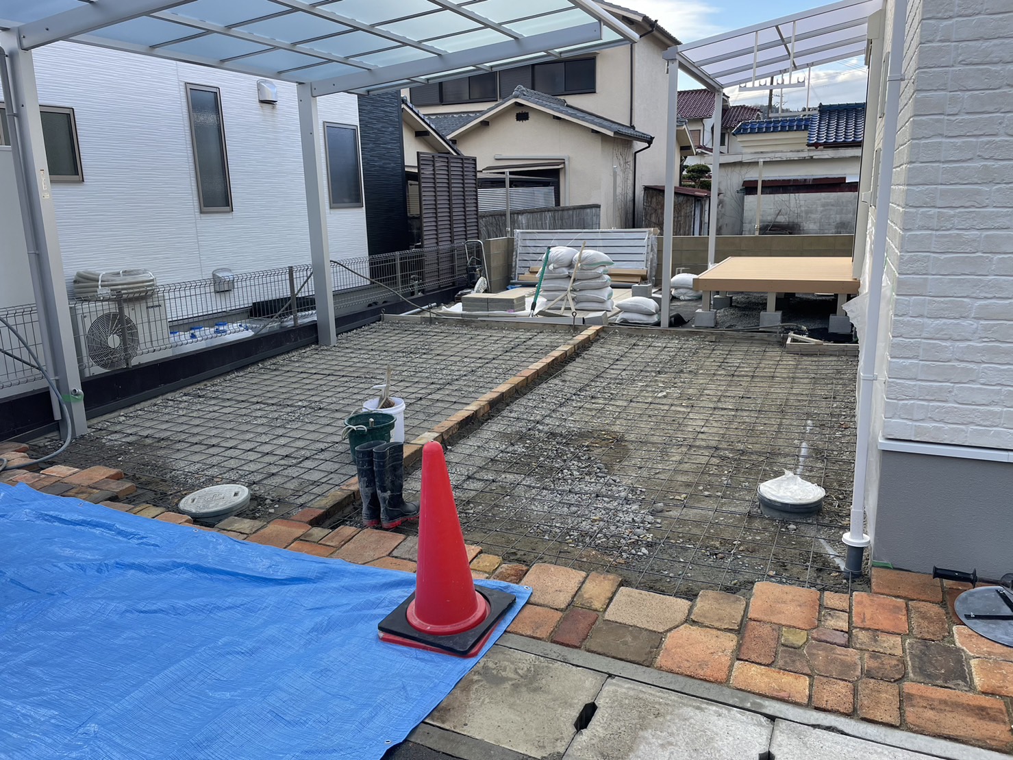 個人住宅の外構工事でコンクリートを使うのは、主に強度が必要なガレージやタイルの下地等です。
