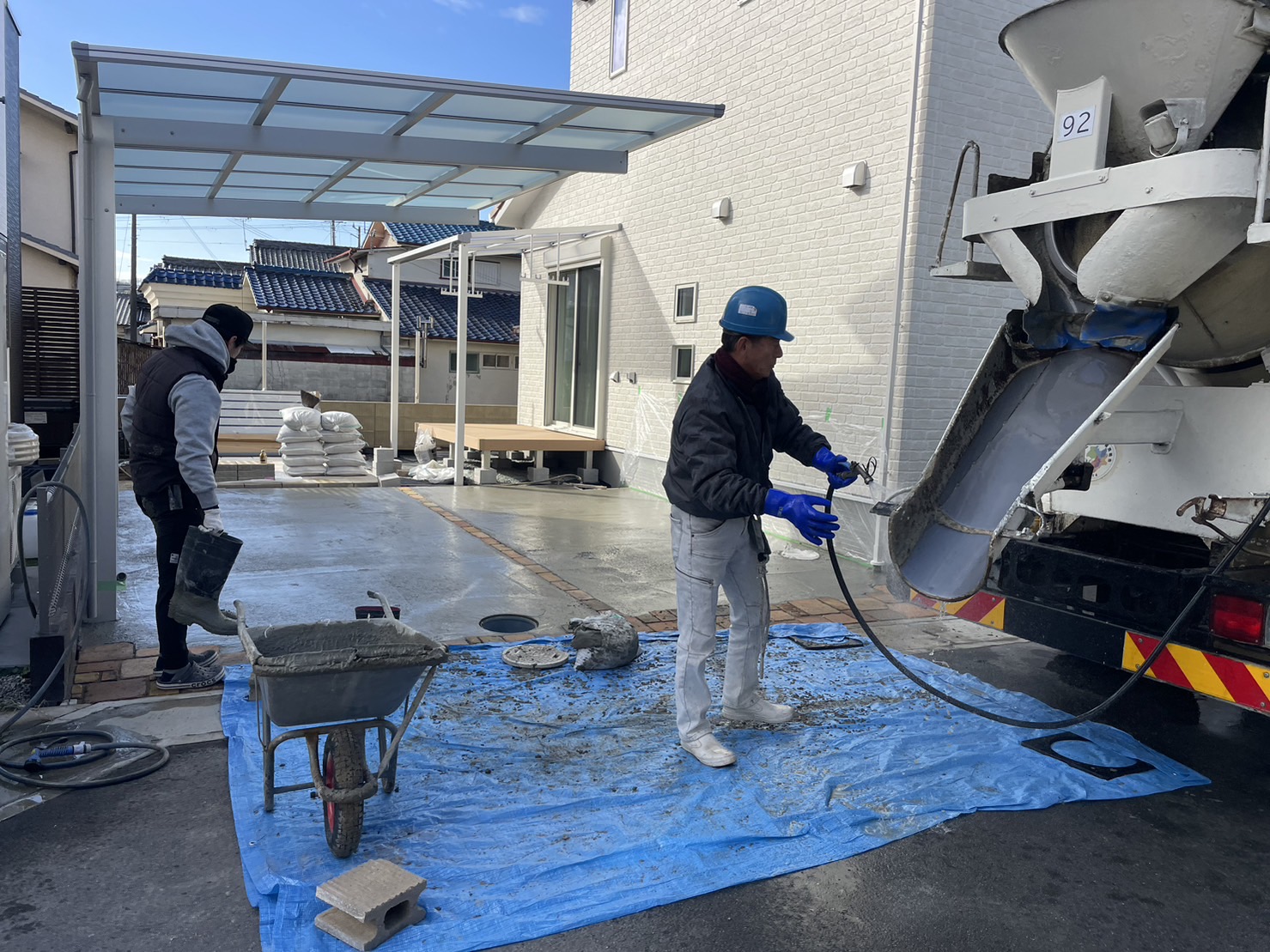 コンクリートを打設後4日目の写真です、季節にもよりますが打設後4~5日後から車を停められるようになります。
