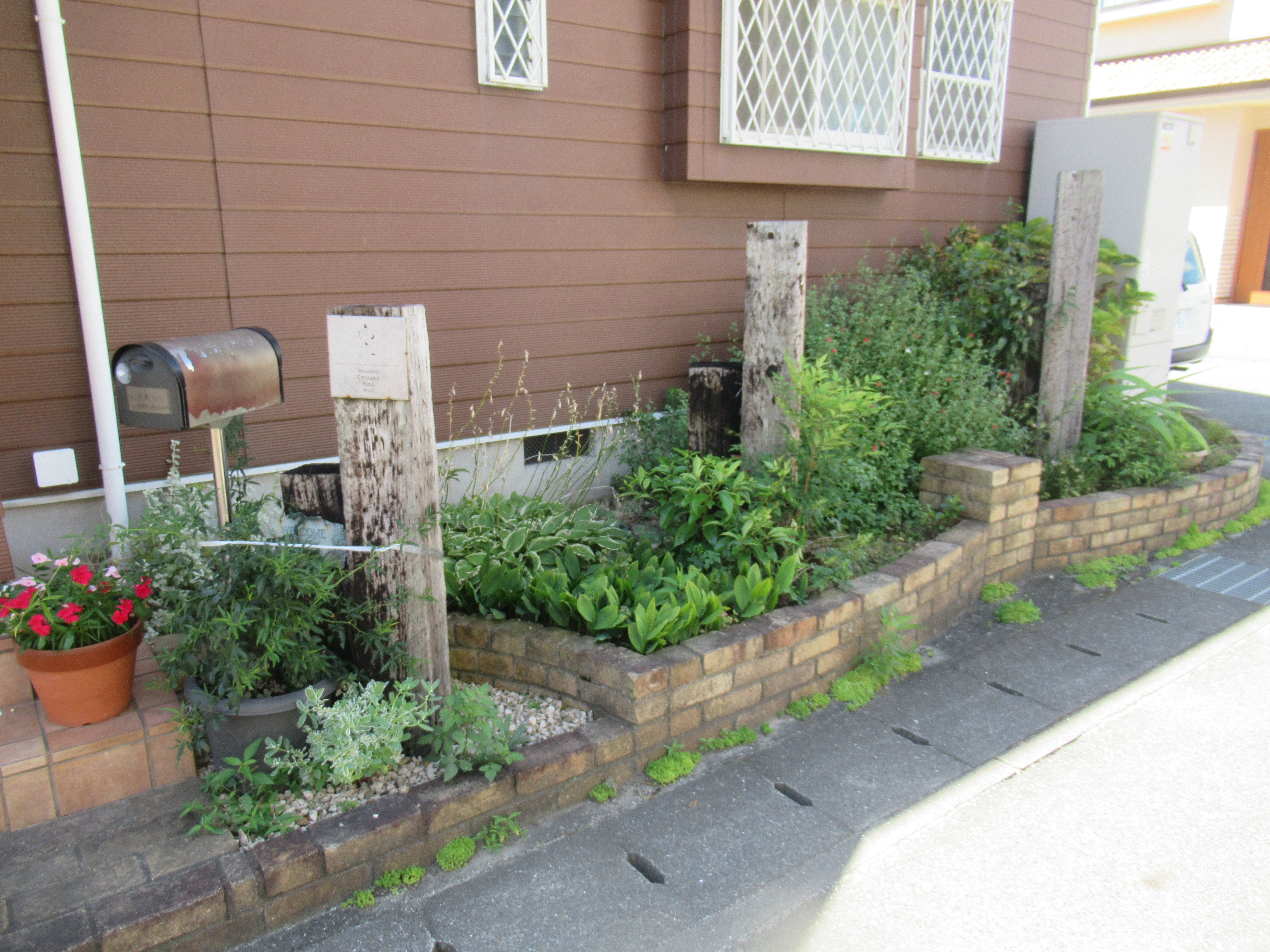 枕木が傷んで植えられた植栽が茂り、雑草の手入れに困られていました。