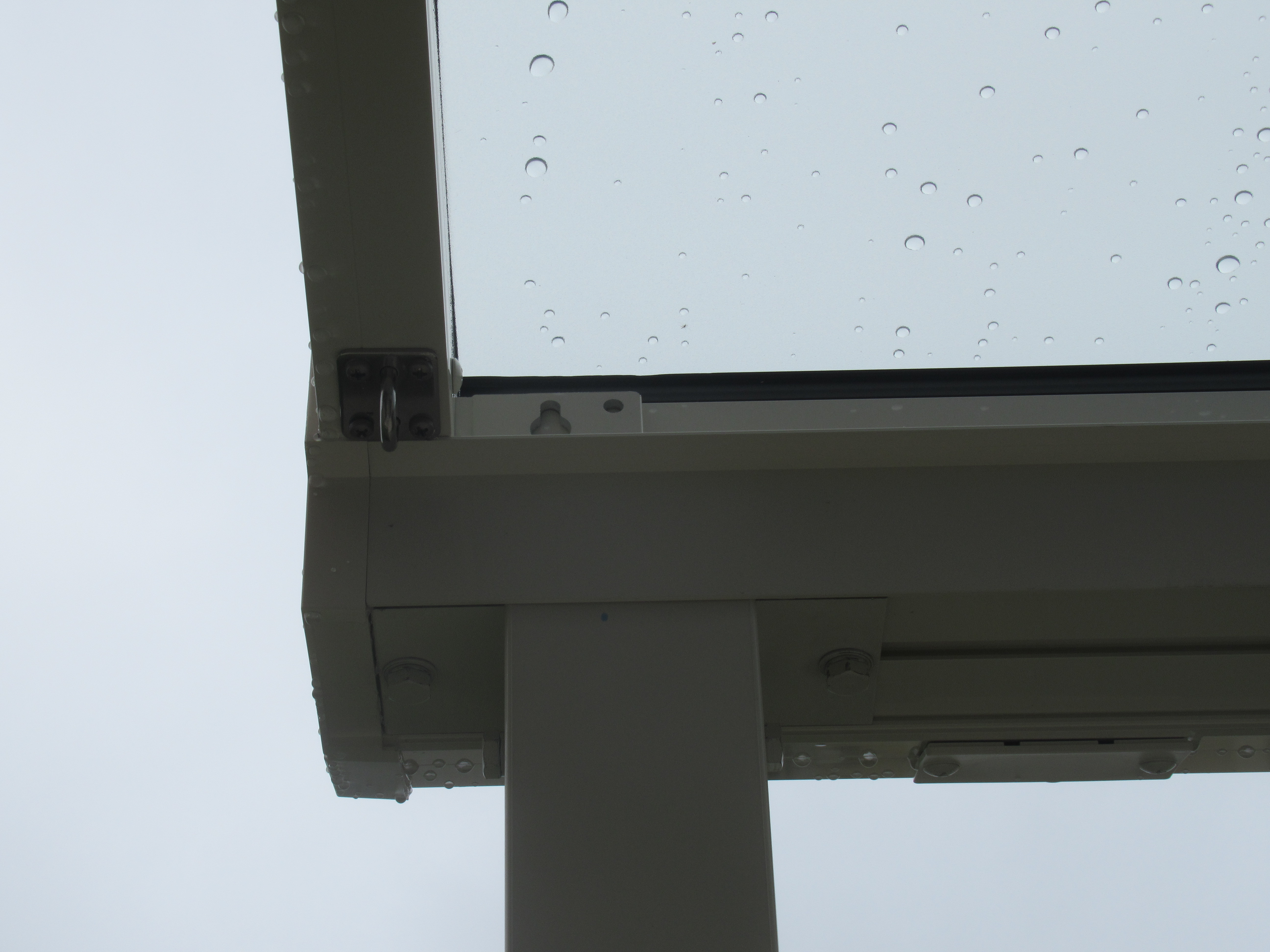 YKKのソラリアテラスF型1.5間(2.7m)x 6尺(1.8m)・熱線遮断ポリカ(クリアマット)を取付けています。