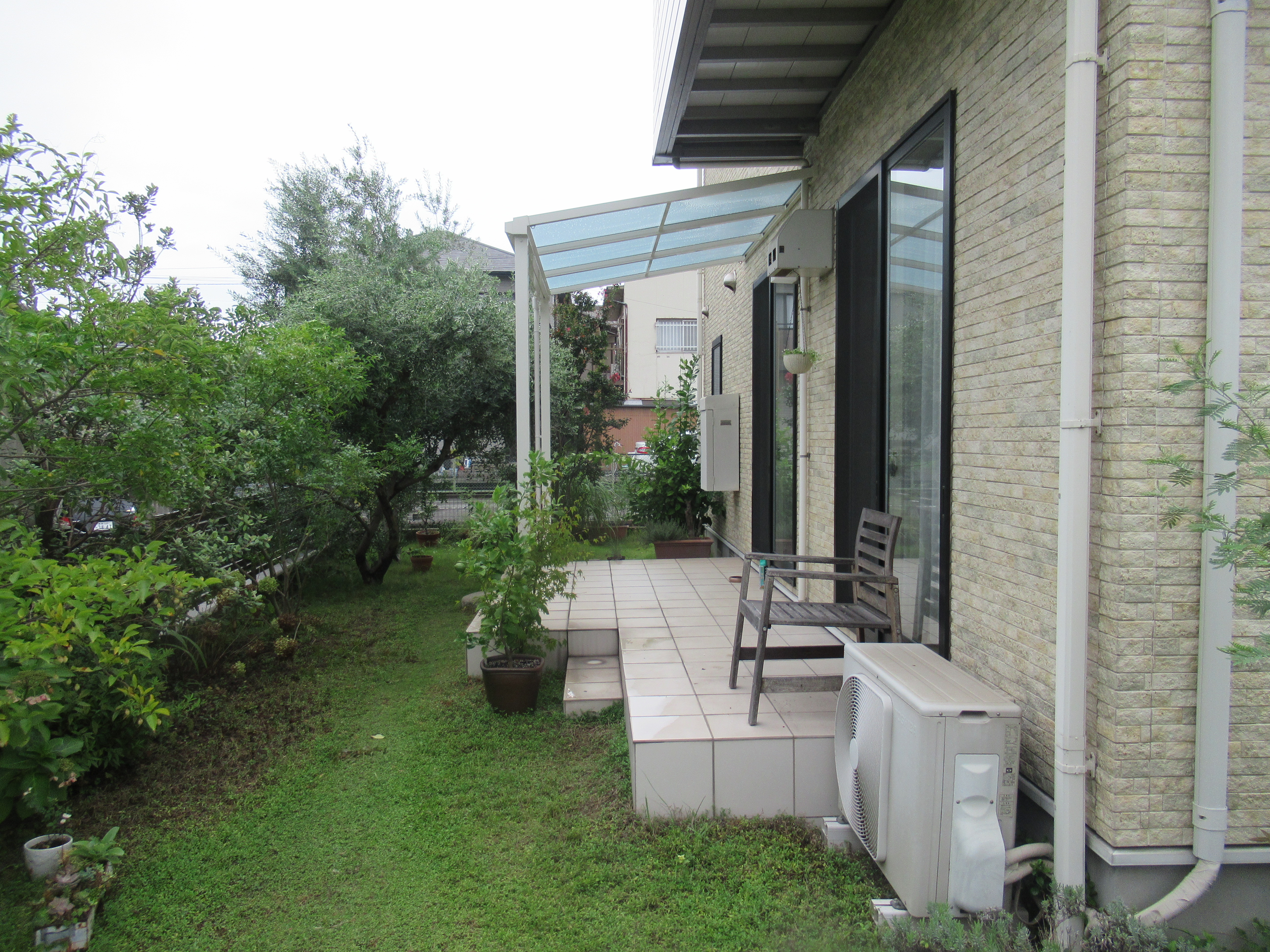 11年前にリビング前のタイルテラスとガレージのヴィンテージレンガ敷きを施工させていただいたお家です。
