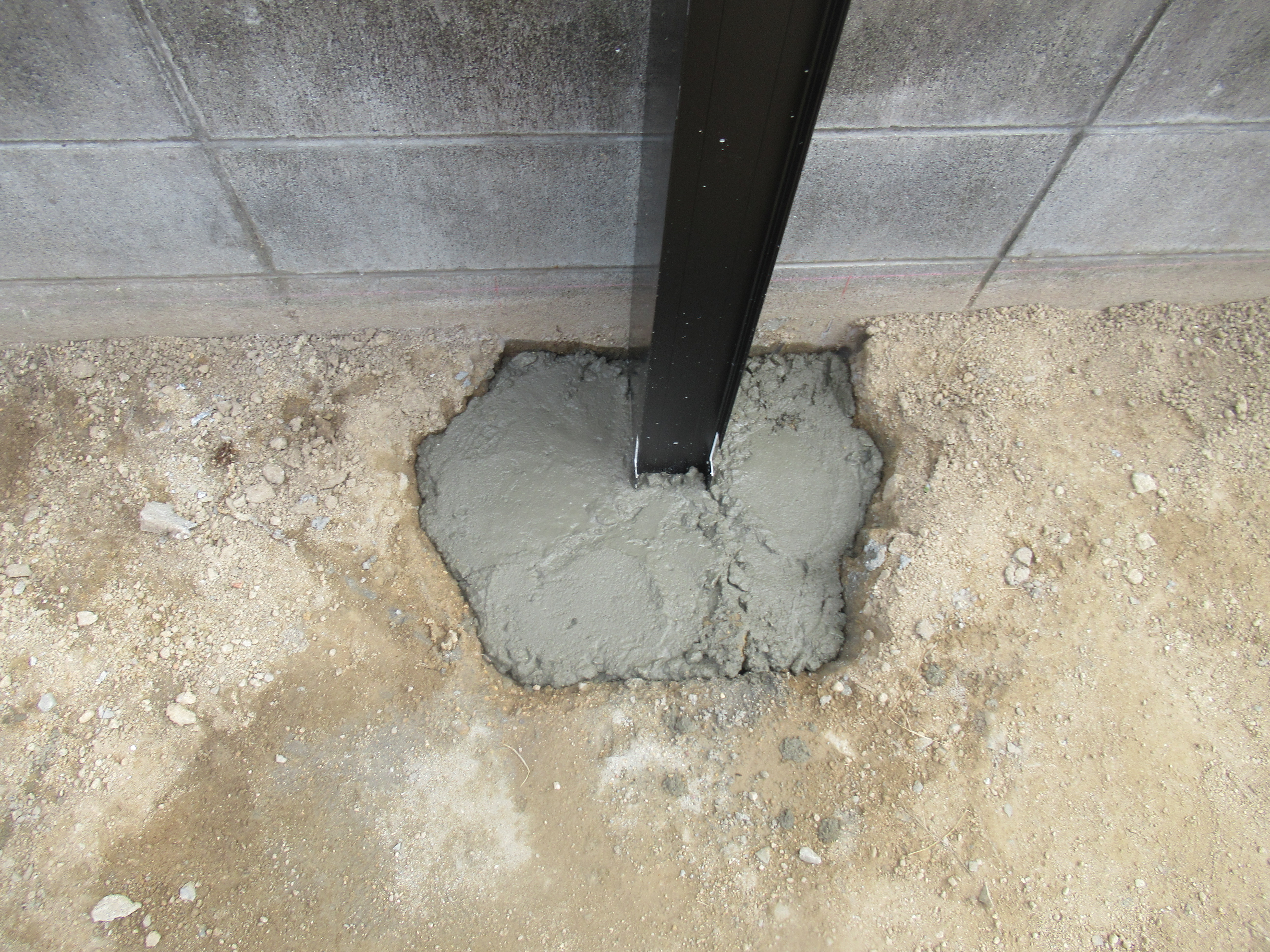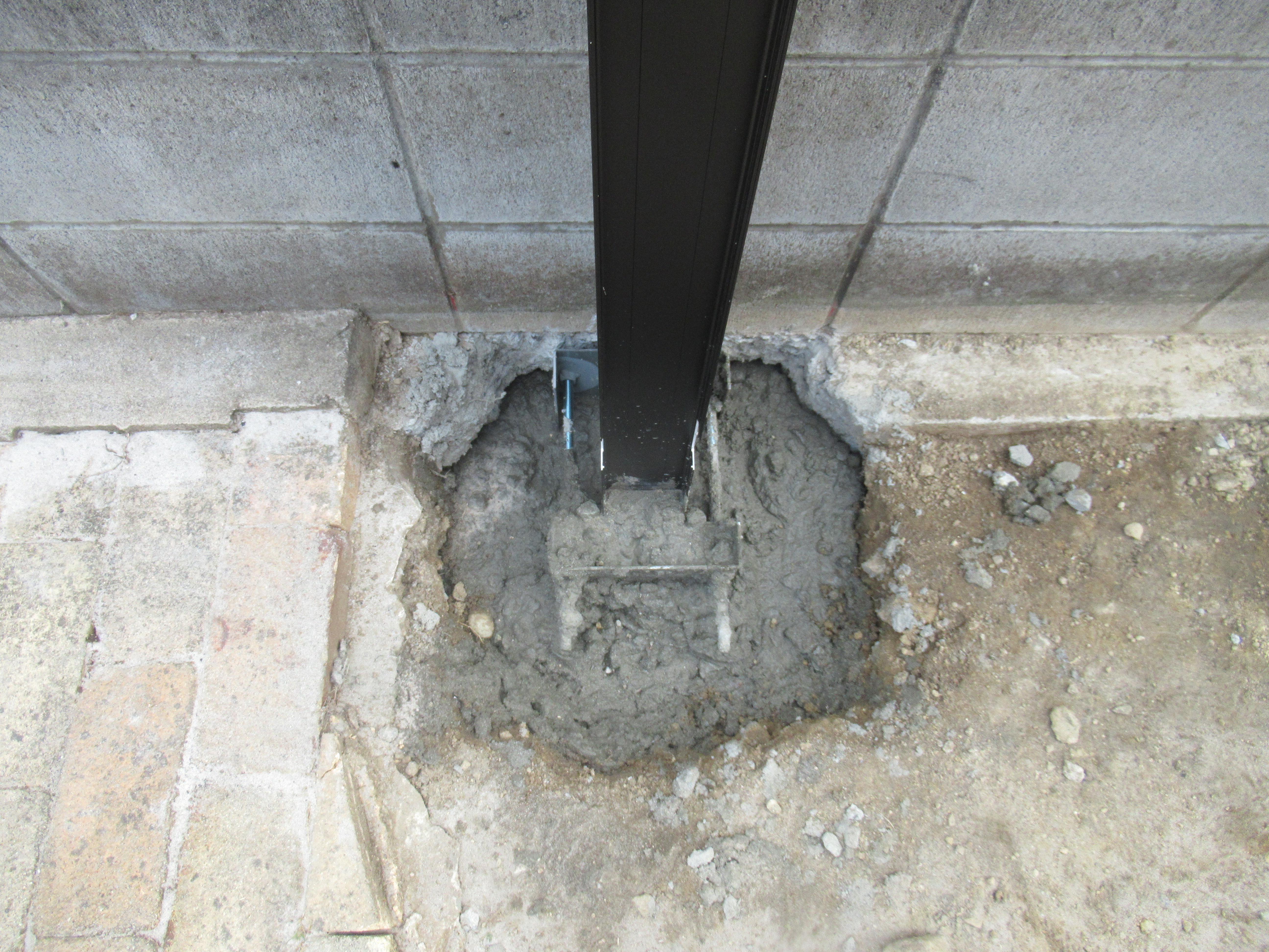 カーポートSCをできるだけ境界寄りに建てたいので偏心基礎部材を使って柱を補強しました。