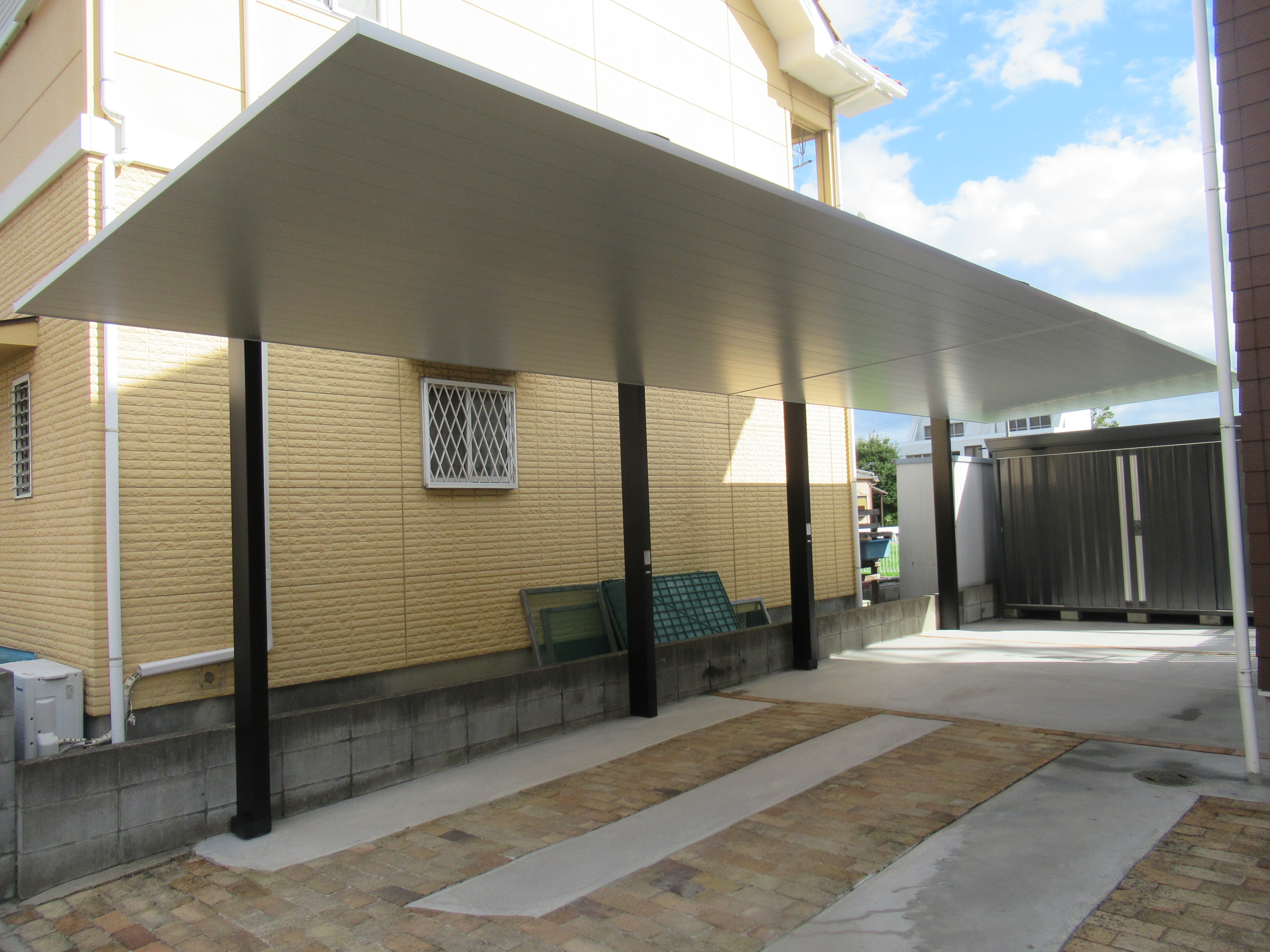 LIXILのカーポートSC30-50型H25柱・縦2連棟 ブラック+ナチュラルシルバーFが完成しました。