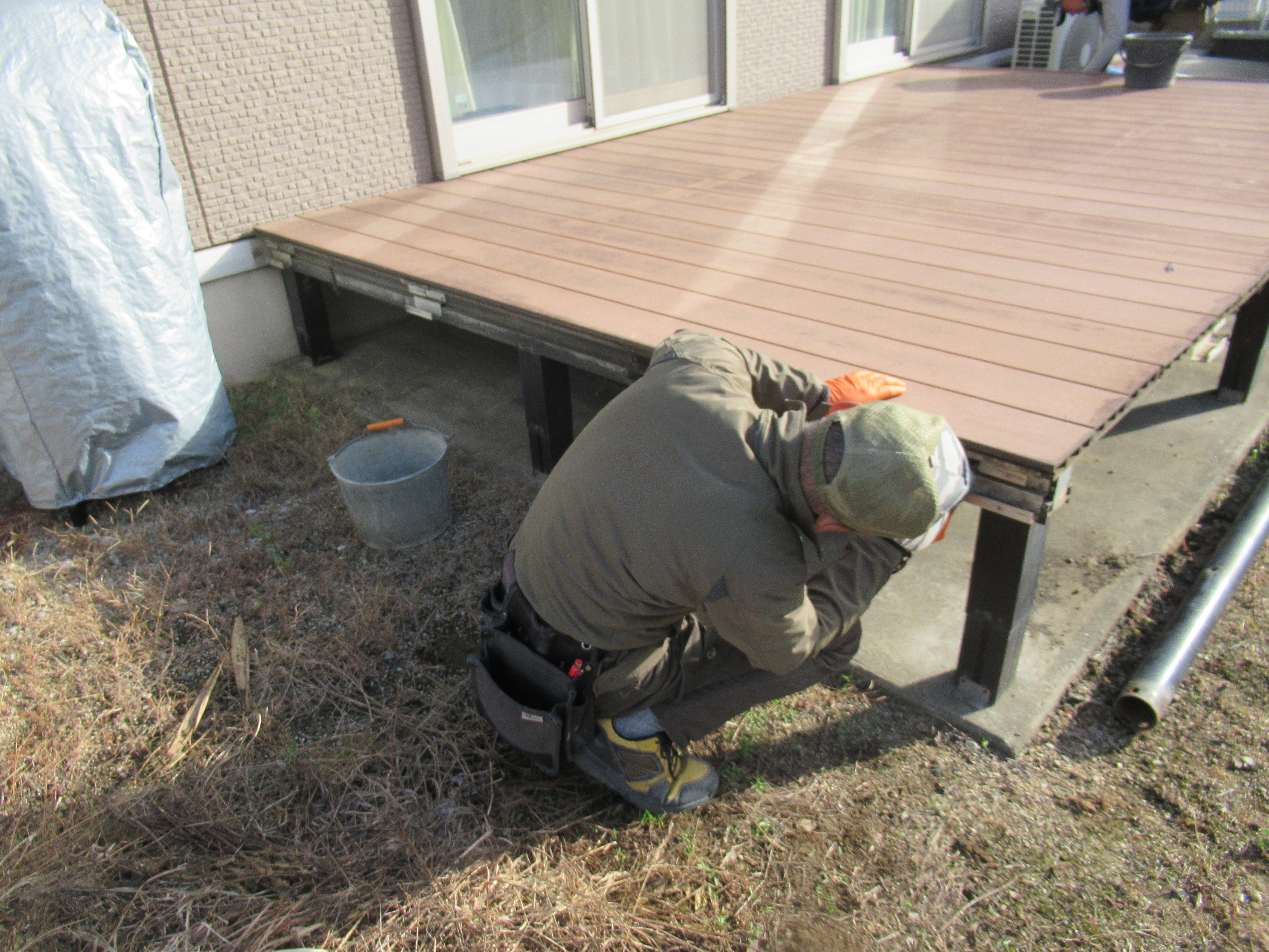 姫路 エクステリア工事 ウッドデッキを撤去してバイク庫に改造します②