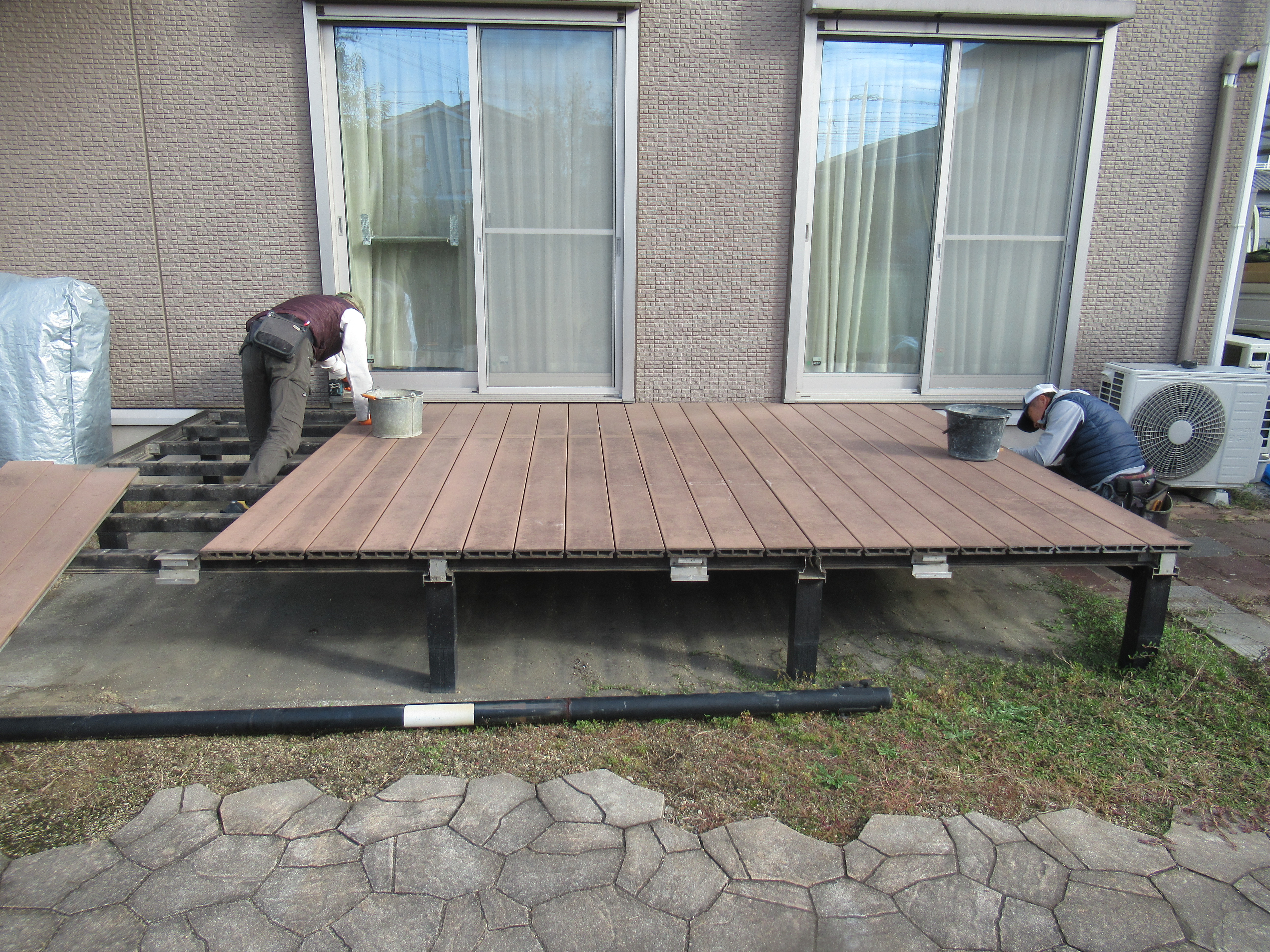 当時まだ出始めだった人工木デッキです、多少汚れてはいますが傷みはありません。