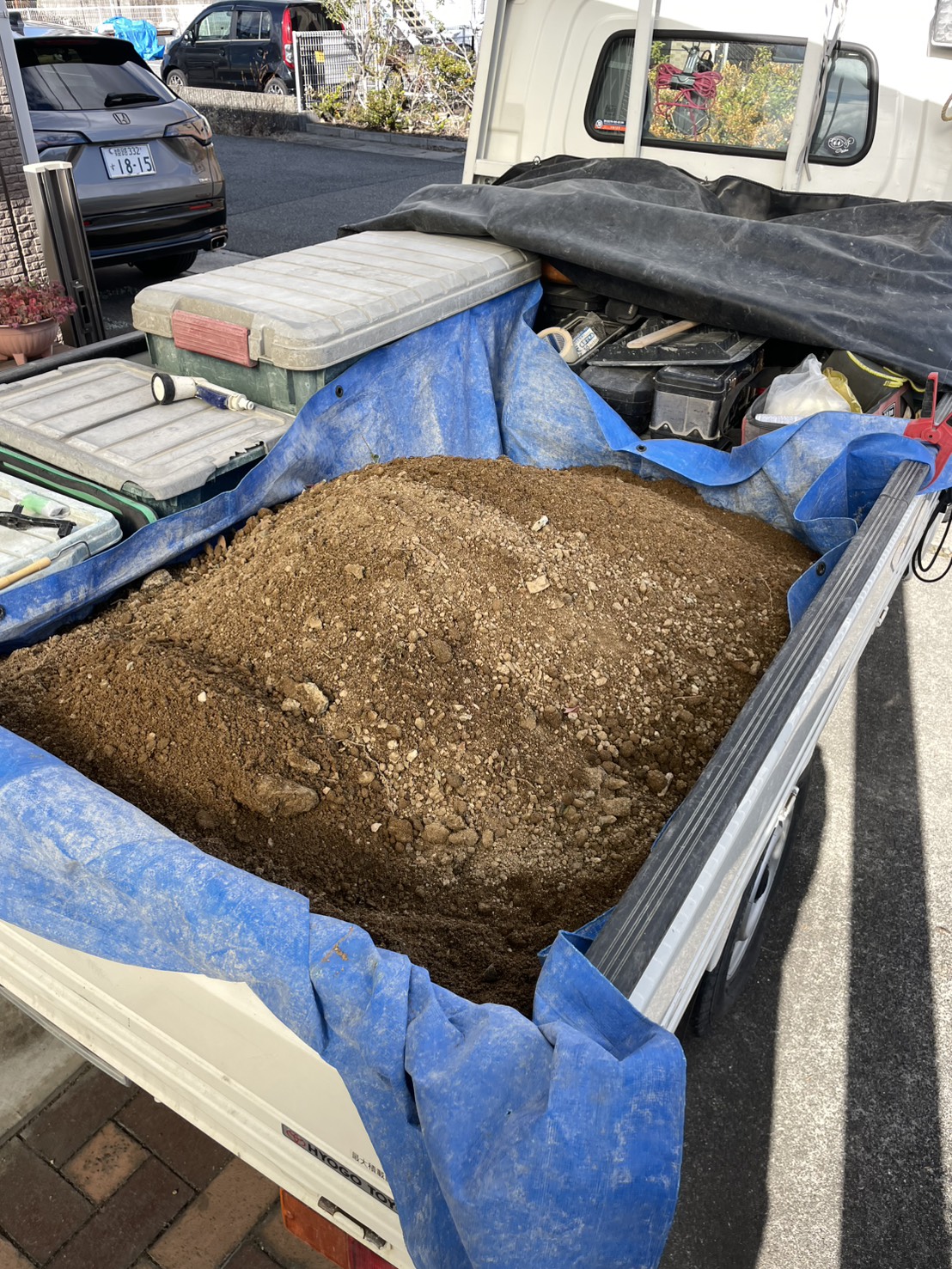手作業で鋤取って残土はトラックに積み込んで処分しました。
