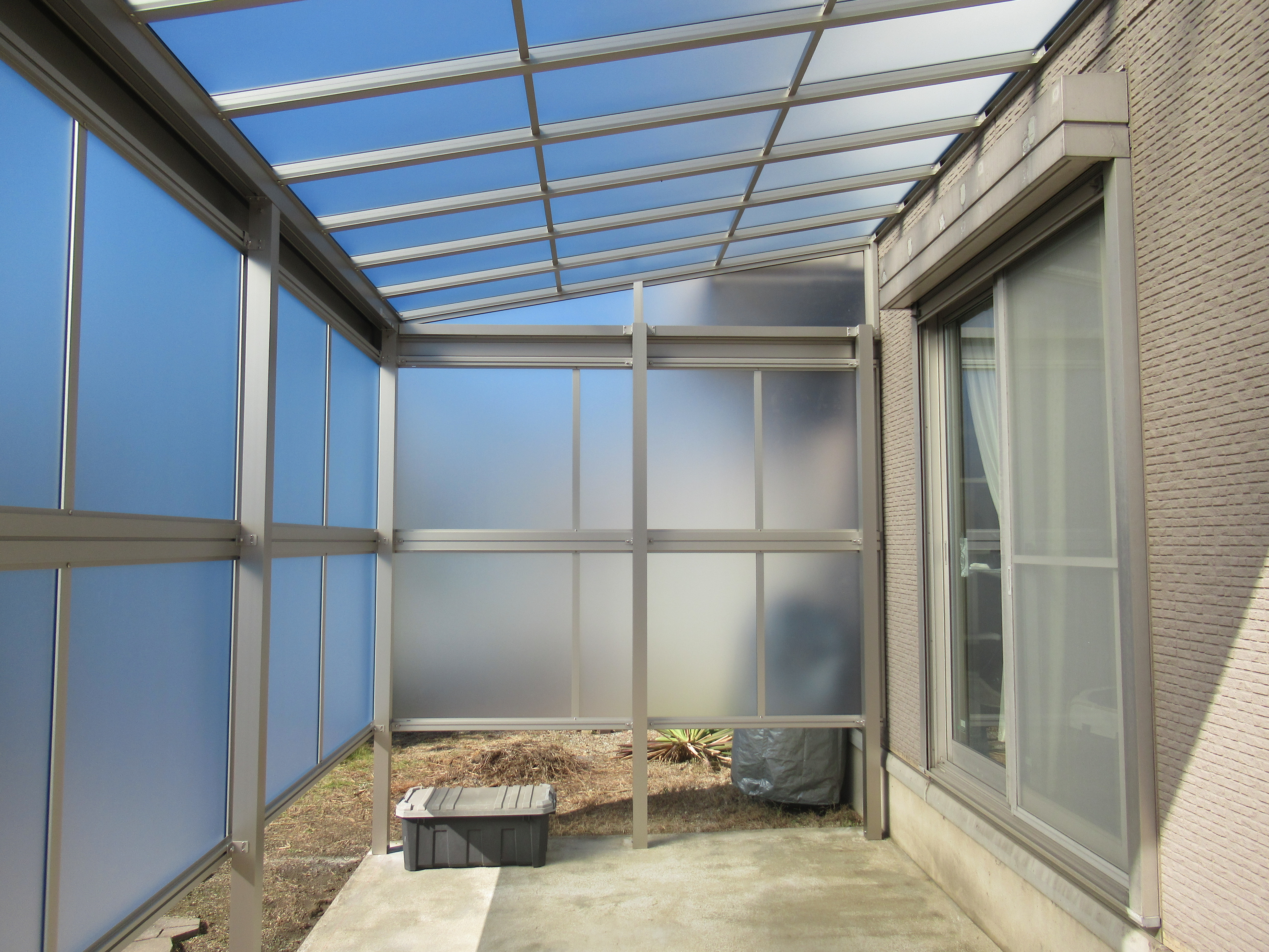熱線遮断ポリカ・クリアマットを使っているので、快適な明るさです。