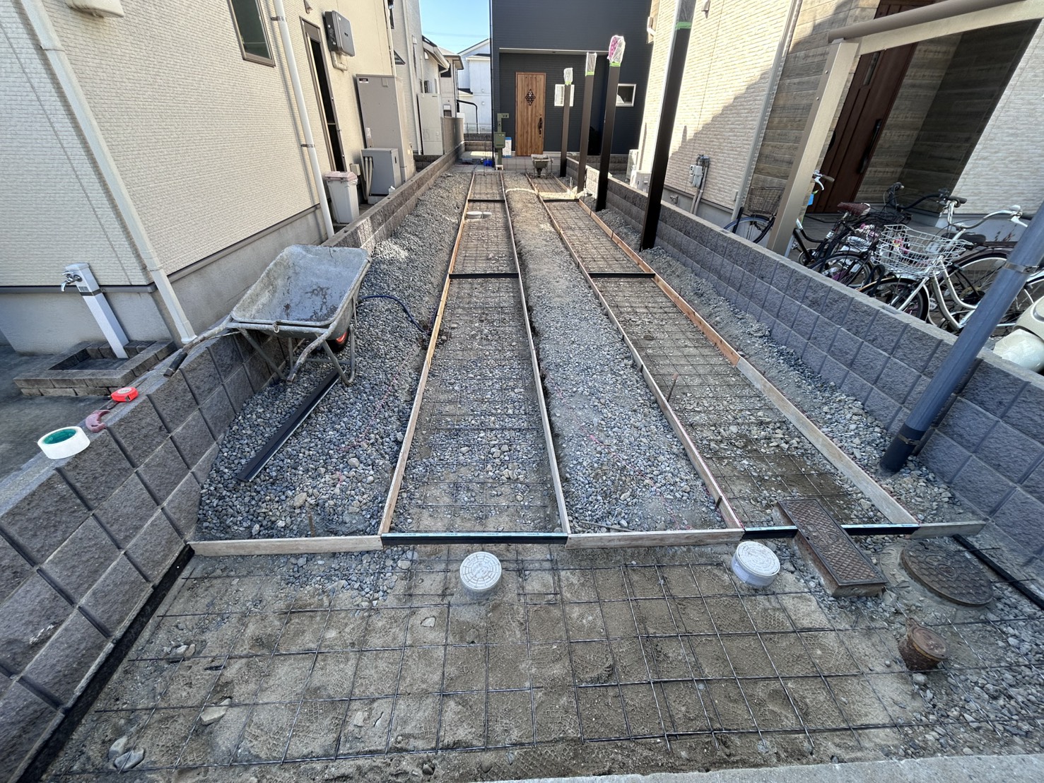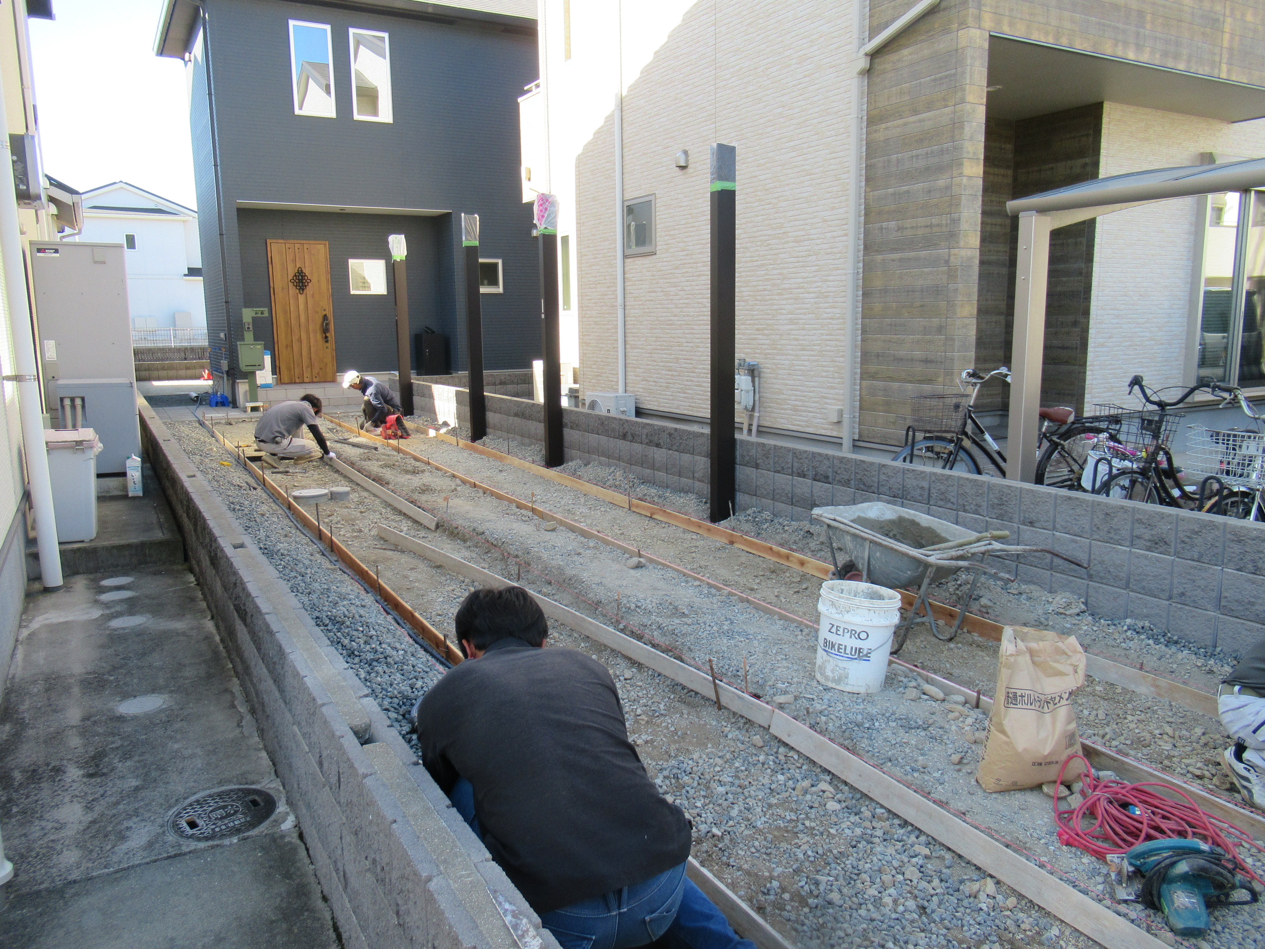 「2025秋のビーズガーデン感謝セール」にお申し込みいただいて、カーポート縦連棟と轍のコンクリートを施工します。