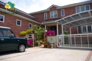 ヨドガレージ、300角石貼り&ライブ仕上げ~和風テイスト・・・石貼り門柱と坪庭~
