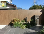 姫路市 K様邸 エバーアートウッド板塀・エバーアートボード・前庭テラス・角地新築外構